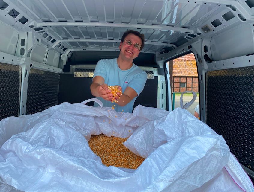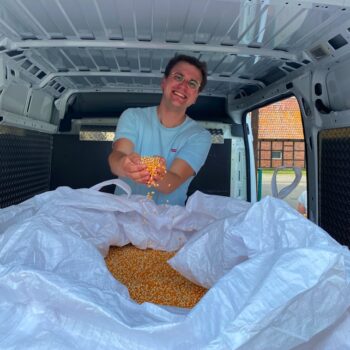 Sowohl hinsichtlich der Verarbeitung als auch des Geschmacks ist der Mais mit den Produkten vergleichbar, die den Kinos von den Concession-Anbietern geliefert werden. Statt den Mais zu beziehen, der per Containerschiff aus Übersee transportiert wird, setzt das Kino-Team jetzt auf Selbstabholung. „Wir nehmen jeweils eine Tonne Mais mit“, erklärt Johannes Austermann. Da das Scala Filmtheater pro Jahr etwa zwei Tonnen Mais für die Popcornherstellung benötigt, fährt er zweimal im Jahr mit einem Transporter zu dem Hof im Münsterland.