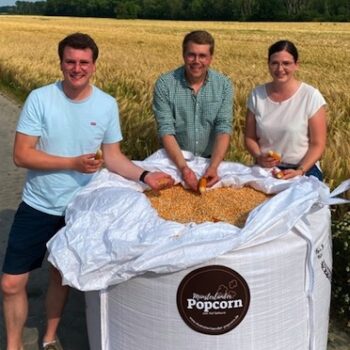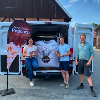 Johannes Austermann besuchte daraufhin den Hof in Ascheberg, wo auf den Maisfelder seit 2020 Puffmais angebaut wird. Zunächst gab es dort nur Butterflymais, den das Scala Filmtheater 2022 für die Popcornherstellung sondierte. „Der Butterflymais war uns für das Popcorn zu klein. Wir verwenden stets Mushroommais“, sagt Katharina Austermann. „Als dort Mushroommais angebaut und geerntet wurde, haben wir diesen getestet und für sehr gut befunden.“