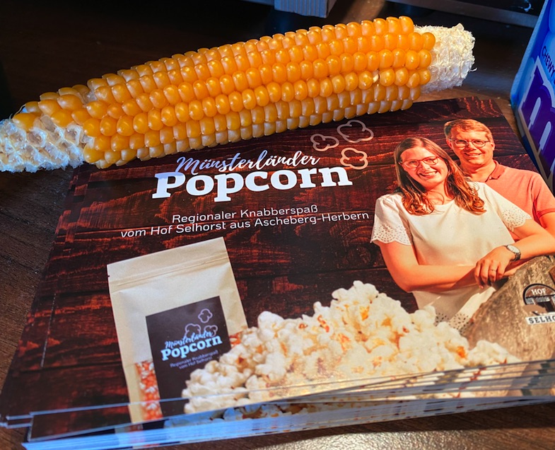 Das Scala Filmtheater in Warendorf bezieht seinen Mais für die Popcornherstellung direkt von einem Bauernhof in der Region, der auf regenerativen Ackerbau setzt. Der Kinobetreiber Johannes Austermann und die Theaterleiterin Katharina Austermann sind über die sozialen Netzwerke auf den knapp 40 km entfernten Hof Selhorst aufmerksam geworden.